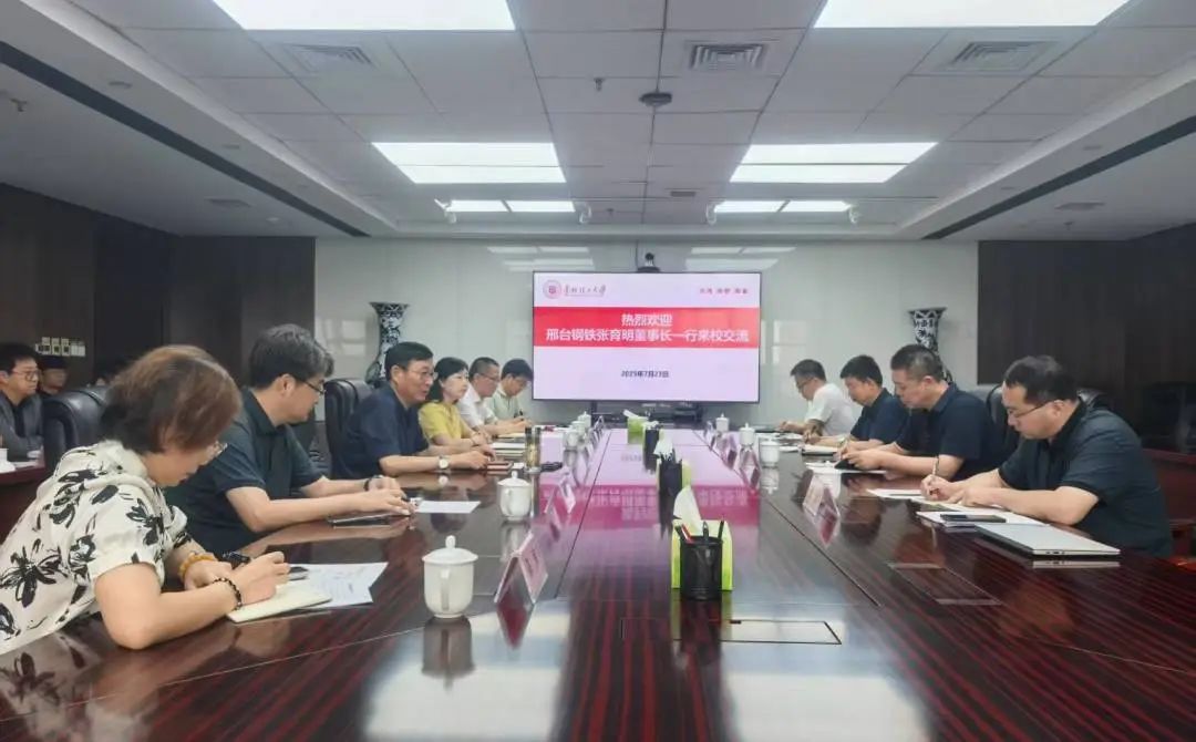 董事長張育明向校方簡要介紹了邢鋼的發(fā)展歷程及轉(zhuǎn)型升級搬遷改造項目,邢鋼作為深耕特鋼線材和深加工領(lǐng)域的高新技術(shù)企業(yè),始終致力于產(chǎn)品創(chuàng)新與技術(shù)升級。當前,邢鋼正全力推進轉(zhuǎn)型升級搬遷項目,對前沿技術(shù)成果轉(zhuǎn)化和高水平人才需求十分迫切,希望深化雙方合作,共同搭建產(chǎn)學(xué)研協(xié)同創(chuàng)新平臺,為邢鋼轉(zhuǎn)型升級與高質(zhì)量發(fā)展提供強有力的技術(shù)支撐。
